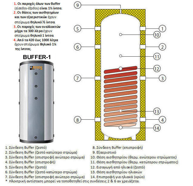Τύπος Εναλλάκτη: μόνιμη σερπαντίνα από χαλυβδοσωλήνα διατομής 33mm (tubo)